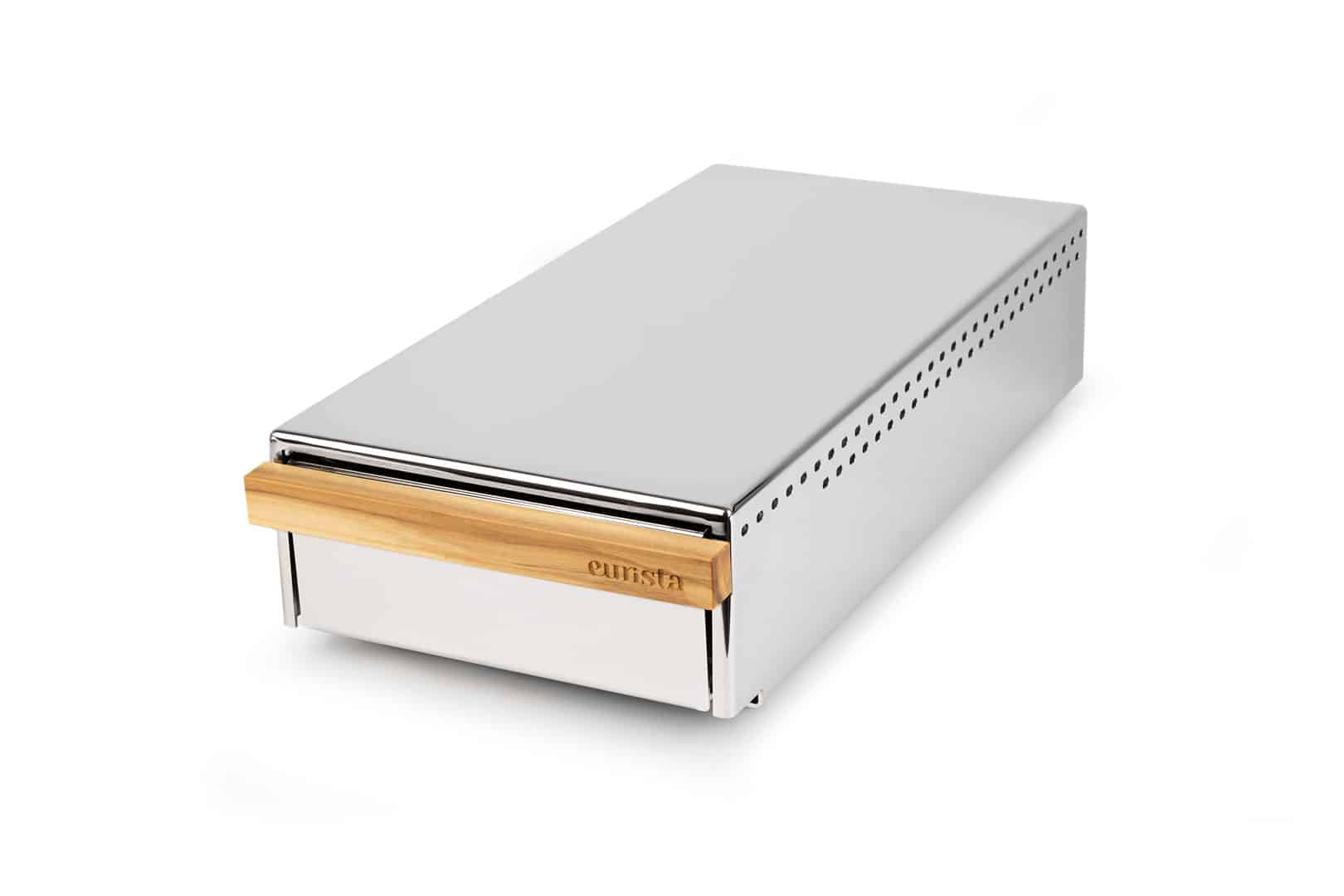 The Eurista Knock Drawer is a stylish and functional home barista accessory that may be just what you’re looking for in a knock bin. Most knock bins are standalone and take up precious real estate on the benchtop, but the Eurista Knock Drawer is designed to slot underneath the coffee grinder. The drawer is easy to pull out, remove and clean. The classic stainless steel finish and sleek wooden handle (available in four finishes) adds a pop of style and visual interest in your coffee machine setup. Ventilation holes help to prevent any nasty surprises if you forget to empty your knock drawer.