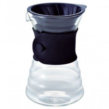 The Hario V60 Decanter is made from high quality heat resistance glass, durable and light. The rubber silicon grip collar makes it a stylish piece to serve your coffee from.
